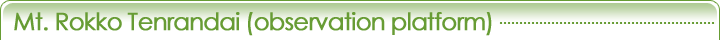 The project for the Heritage of Japanese Night Views selected this scenic view that is said to be a 10 million dollar view. This lookout commonly visited by travelers to Kobe is in the immediate vicinity of the Rokko Cable Sanjo Station and is one of several places on Mt. Rokko for gaining an expansive night view of the sea of city lights spreading out from Osaka, Kobe, and Awaji Island. In 1981, the Emperor Showa came to this spot and commemorated it as Tenrandai. Since the parking lot and lookout are open free of charge 24 hours a day, this spot can be easily reached and is a popular destination, day and night, because of its shops and coffee shop. On a clear day in the distance, you can see the Kansai airport and the business district of Osaka to the east and the Akashi Strait Bridge, the longest suspension bridge in the world, and Awaji Island to the west. Moreover, you can clearly see the scene from the Kobe city district to the several manmade Islands, such as Rokko Island, Port Island, and the Kobe Airport Island.